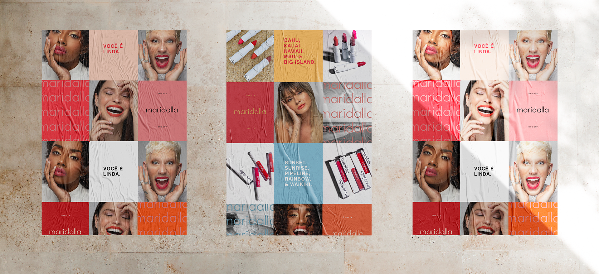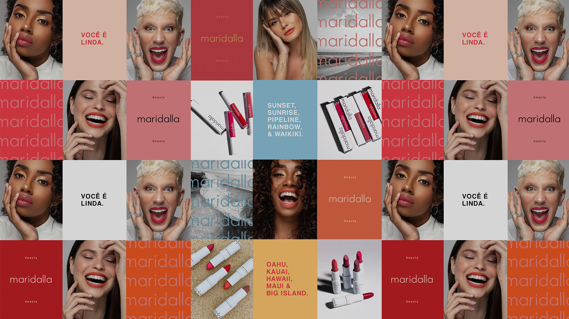 Brand design, logo & embalagem para Maridalla Beauty, marca brasileira de make-up e cosméticos cruelty free.